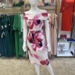This midi-length Ispirato dress is tailored to flatter, designed for modern occasion style, perfect for weddings or race days. This dress is available in size 12.