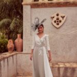 Designed in ivory taupe, this midi dress embodies soft sophistication with understated detailing and expert tailoring.